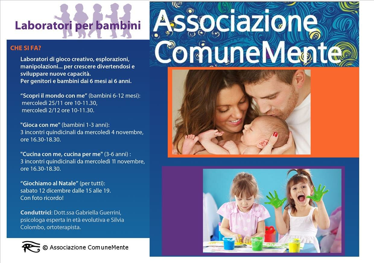 L’Associazione attiva periodicamente, presso le proprie sedi di Busto Garolfo e Arluno e presso enti pubblici ed enti del privato sociale, una serie di laboratori e percorsi ludico-espressivi per bambini e famiglie.